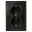 Розетка двойная 2-я серии Intro Plano скрытой установки цвет антрацит 1-205-05. Номинальные характеристики 16А 250В. Розетка выполнена из керамики, укомплектована одноместной рамкой, оснащена винтовыми клеммами. Клеммы с двумя отверстиями позволяют соединять соседние розетки шлейфом. Установка в подрозетник производится как на монтажные лапки, так и на винты.
