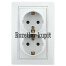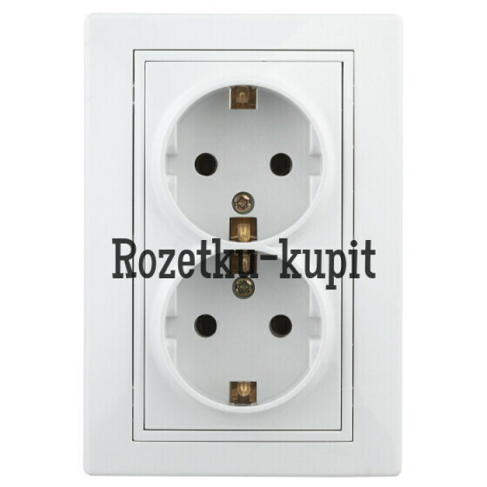 Розетка двойная с заземлением 2X2P+E Schuko со шторками, 16А-250В, IP20, СУ, б.л., белый Intro Plano 1Э-208-01