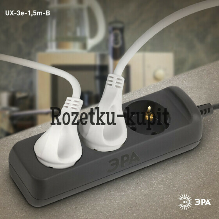 Удлинитель электрический Эра UX-3e-1,5m-B с заземлением, черный, 3 розетки. Провод ПВС, 3x0,75мм2, 1,5 м. Рассчитан на максимальную мощность 10А/2200 Вт. Удлинитель Эра станет Вашим надежным помощником, если Ваши любимые электроприборы находятся далеко от розеток. Провод в удлинителях Эра сделан из 100% меди, что делает его абсолютно пожаробезопасным. Корпус выполнен из ударопрочного и негорючего пластика (полипропилен). Вилка обеспечена кольцом для удобного извлечения ее из розетки. Модель удлинителя на 10А позволяет подключить бытовые приборы общей нагрузкой до 2200 Вт. Дизайн удлинителя разработан в России командой Эра Style.