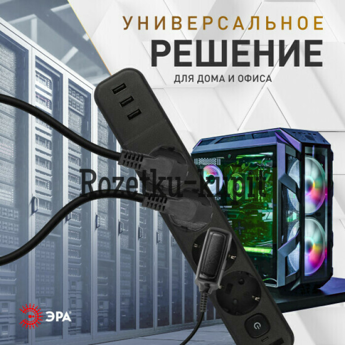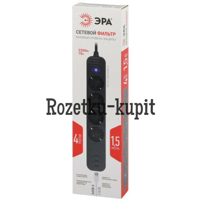 Сетевой фильтр ЭРА USF-4es-1,5m-3xUSBA-B с заземлением, с выключателем, 4 розетки, 3USB, провод 1,5 м, ПВС 3x0,75мм2. Базовый уровень защиты техники: от импульсных помех, от перегрузки, от короткого замыкания. Максимальная мощность 10А/2200 Вт. Корпус из негорючего пластика (полипропилен). Вилка обеспечена кольцом для удобного извлечения ее из розетки. Выключатель со световой индикацией позволяет выключить все приборы, подключенные к сетевому фильтру, не вынимая вилки из розетки. Отлично подойдет для защиты бытовой и компьютерной техники. Сетевой фильтр оснащен 3USB для зарядки мобильных устройств.