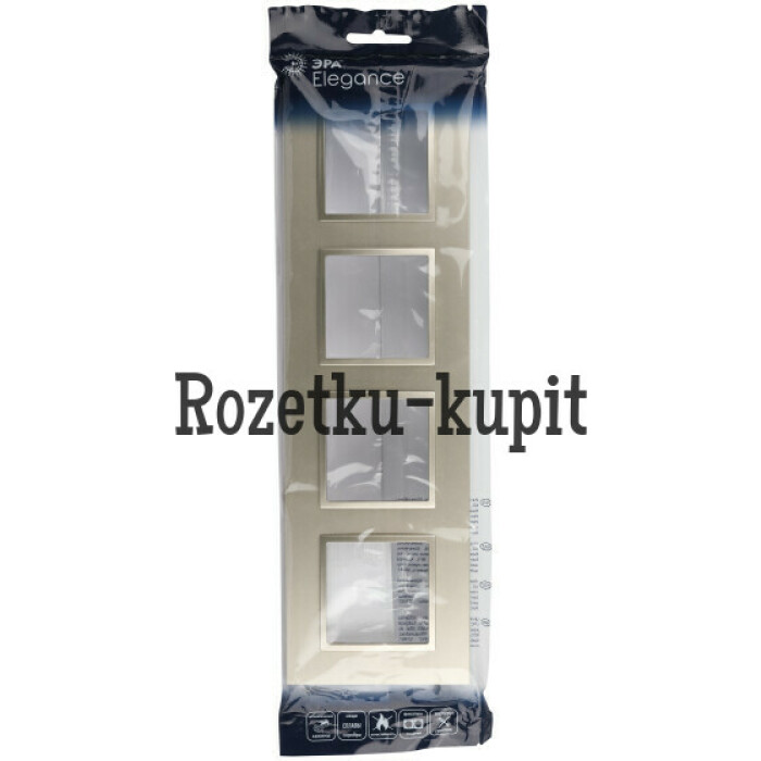 Рамка для выключателей и розеток на 4 поста серии Эра Elegance Classic цвет шампань 14-5014-04. Сделана из поликарбоната. Используется только с механизмами серии Эра Elegance.