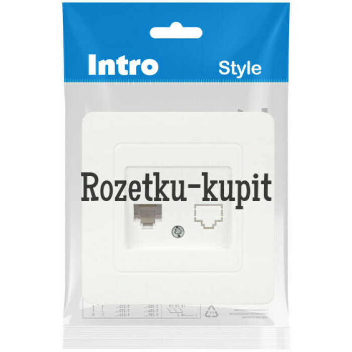 Розетка информационная RJ45 серии Intro Plano Style скрытой установки цвет белый 7-303-01. Розетка выполнена из термопласта, укомплектована одноместной рамкой.
