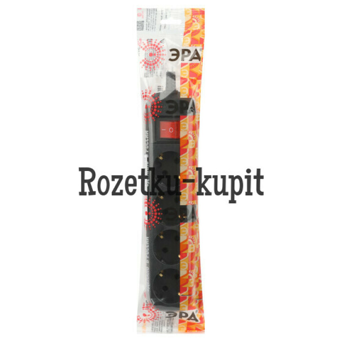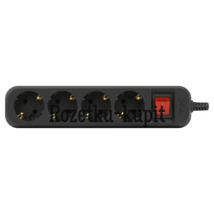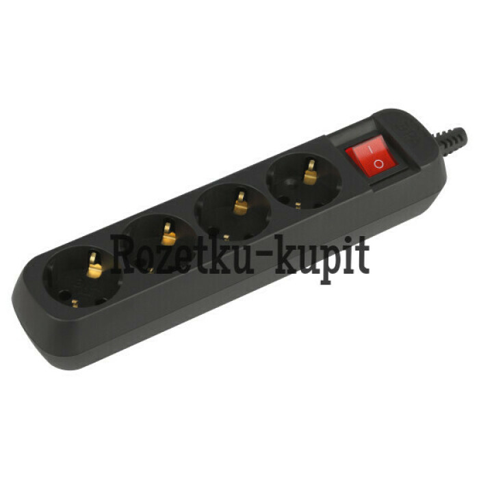 Колодка ЭРА KX-4es-B на 4 розетки, с заземлением, с выключателем, черная. Максимальная мощность - 16 А/3500 Вт. Для кабеля до 3х1,5мм2