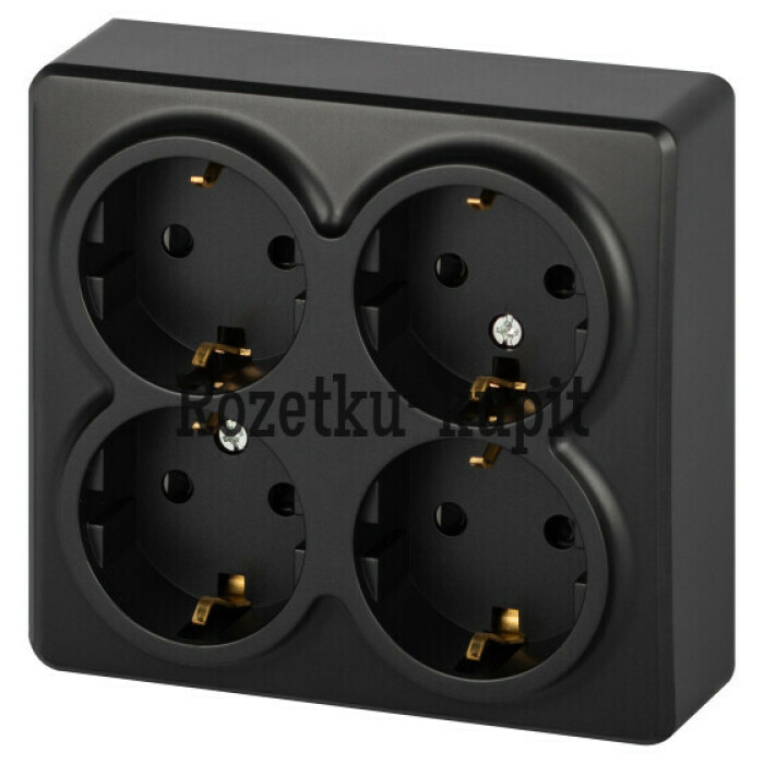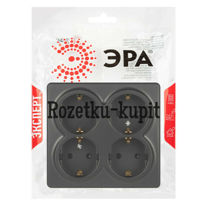 Розетка четырехместная с заземлением, со шторками серии Эра Эксперт открытой установки цвет антрацит 11-2211-05. Номинальные характеристики 16А 250В. Устройство выполнено из качественного поликарбоната, оснащёно уникальными винтовыми клеммами ЭКСПЕРТ для максимально качественного зажима кабеля в механизме.