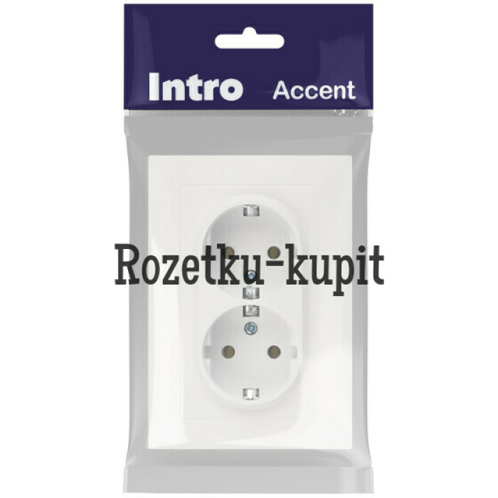 Розетка двойная с заземлением серии Intro Accent скрытой установки цвет белый матовый 6-205-01М. Номинальные характеристики 16А 250В. Выполнена из негорючего термопласта, оснащена винтовыми клеммами. Парные клеммы обеспечивают соединение шлейфом. Монтаж в подрозетник производится и на лапки, и на винты.