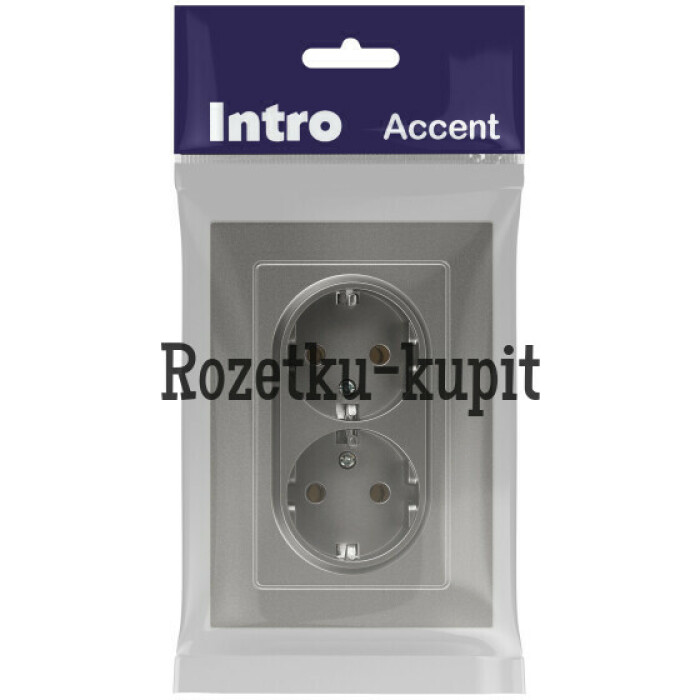 Розетка двойная с заземлением серии Intro Accent скрытой установки механизм цвет титан 6-205-09. Номинальные характеристики 16А 250В. Выполнена из негорючего термопласта, оснащена винтовыми клеммами. Парные клеммы обеспечивают соединение шлейфом. Монтаж в подрозетник производится и на лапки, и на винты.