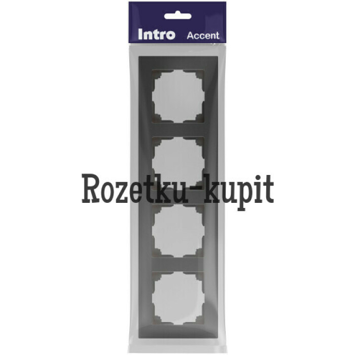 Рамка для розеток и выключателей 4-постовая универсальная пластик серии Intro Accent цвет графит 6-504-07. Рамка выполнена из термопласта. Устанавливается на 4 устройства серии Intro Accent, смонтированных в подрозетники.