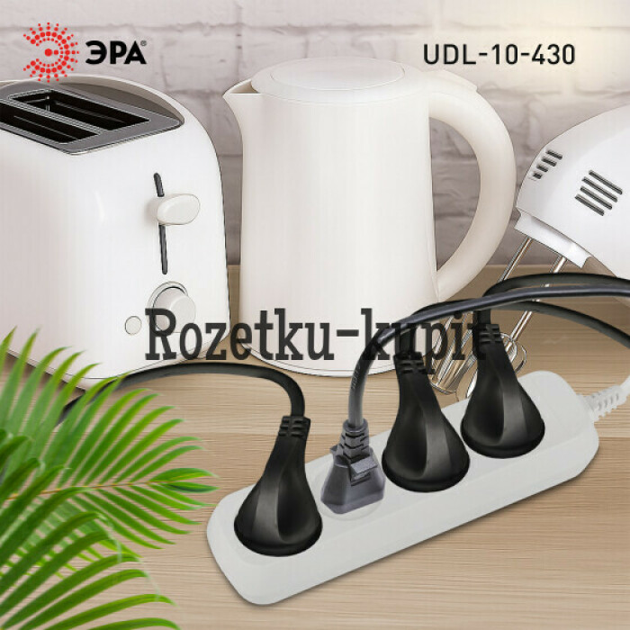 Удлинитель электрический Эра GREENLINE UDL-10-430 без заземления, на 4 розетки, провод 3м ПВС 2x0,75мм2. Рассчитан на максимальную мощность 10А/2200 Вт. Удлинитель станет Вашим надежным помощником, если любимые электроприборы находятся далеко от розеток. Корпус выполнен из ударопрочного и негорючего пластика (полипропилен). Модель удлинителя на 10А позволяет подключать бытовые приборы общей нагрузкой до 2200Вт.