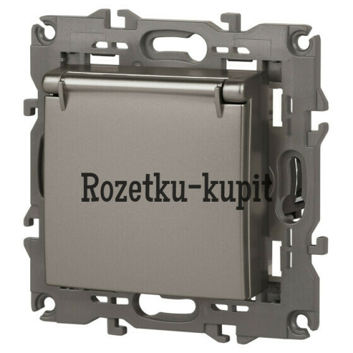 Розетка с заземлением, шторками и крышкой серии Эра Elegance цвет титан 14-2103-16. Характеристики 16А 250В. Оснащена автоматическими клеммами для надёжной фиксации жил кабеля в механизме. Рамки приобретаются отдельно.