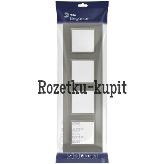 Рамка для выключателей и розеток 4-постовая серии Эра Elegance Classic цвет титан 14-5014-16. Сделана из поликарбоната. Используется только с механизмами серии Эра Elegance. Классический "квадратный" дизайн.