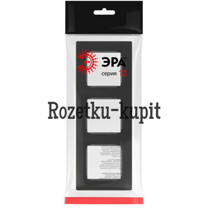 Рамка для розеток и выключателей ЭРА 12 12-5203-06 на 3 поста, Классик, цвет чёрный глянец. Обновленный дизайн. Рамка может быть установлена как горизонтально, так и вертикально. Размер 229х85х9мм.