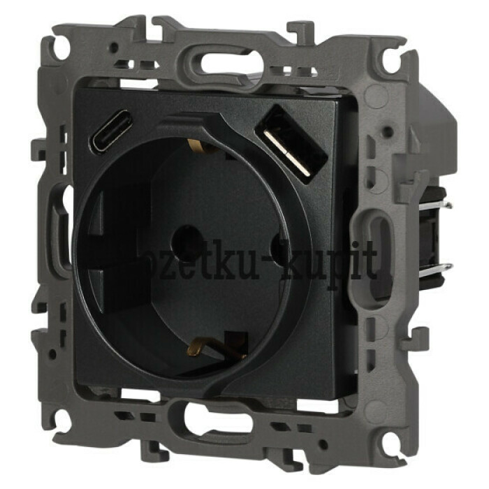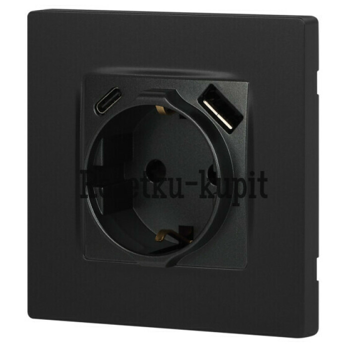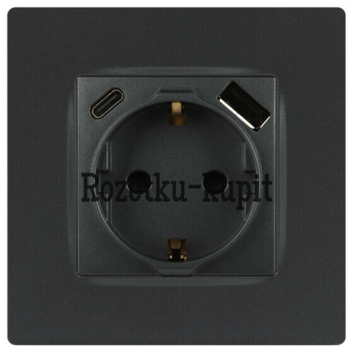 Розетка с USB A+C серии Эра12 12-4108-12 цвет графит. Номинальные характеристики: розетка силовая – 16А 250В. Розетка USB type A – 3A 5В. Розетка USB type C – 3A 5В. Рамки приобретаются отдельно