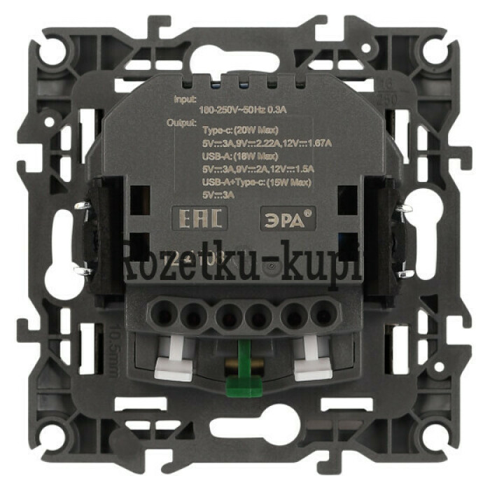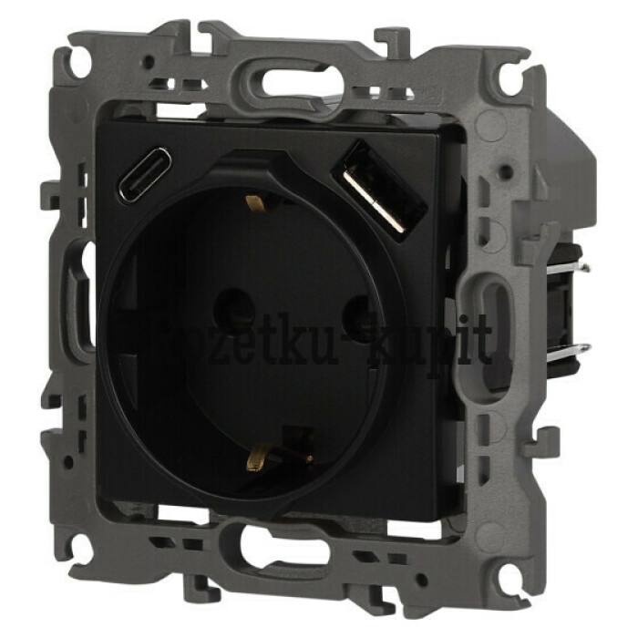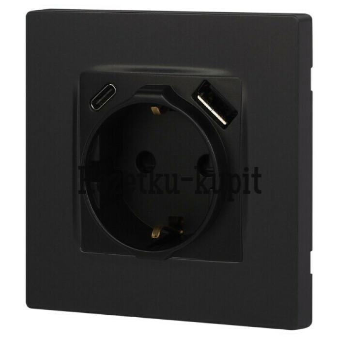 Розетка с USB A+C серии Эра12 12-4108-05 цвет антрацит. Номинальные характеристики: розетка силовая – 16А 250В. Розетка USB type A – 3A 5В. Розетка USB type C – 3A 5В. Рамки приобретаются отдельно