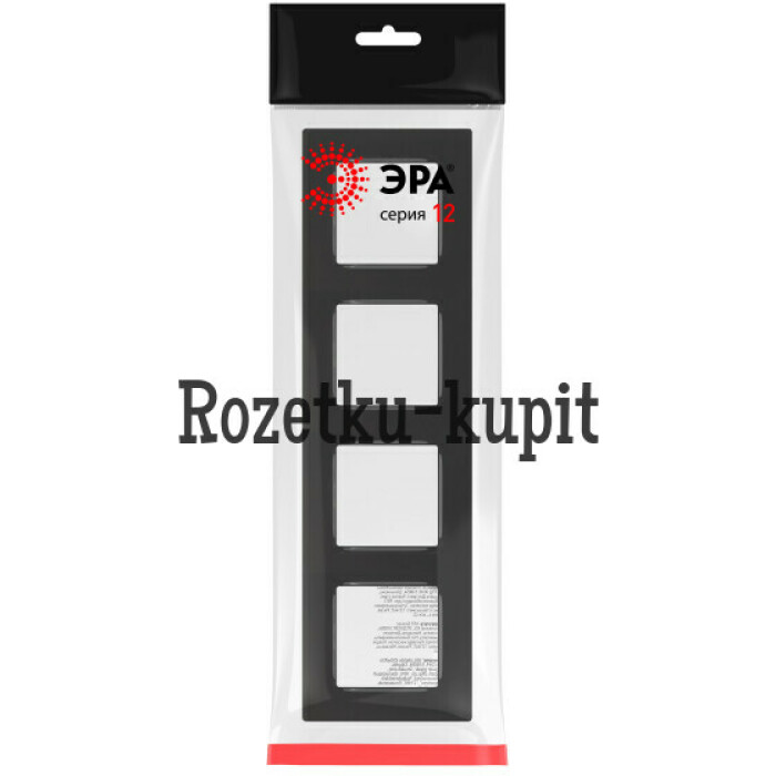 Рамка для розеток и выключателей ЭРА 12 12-5204-06 на 4 поста, Классик, цвет чёрный глянец. Обновленный дизайн. Рамка может быть установлена как горизонтально, так и вертикально. Размер 301х85х9мм.