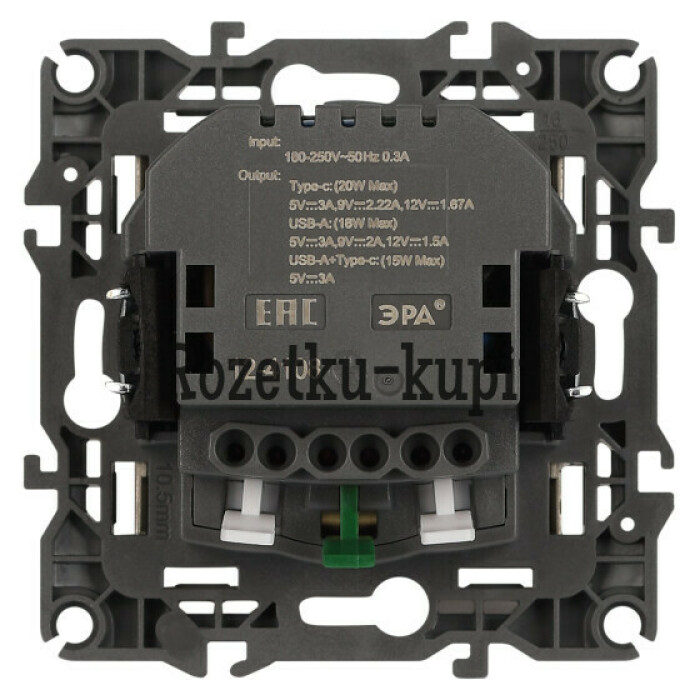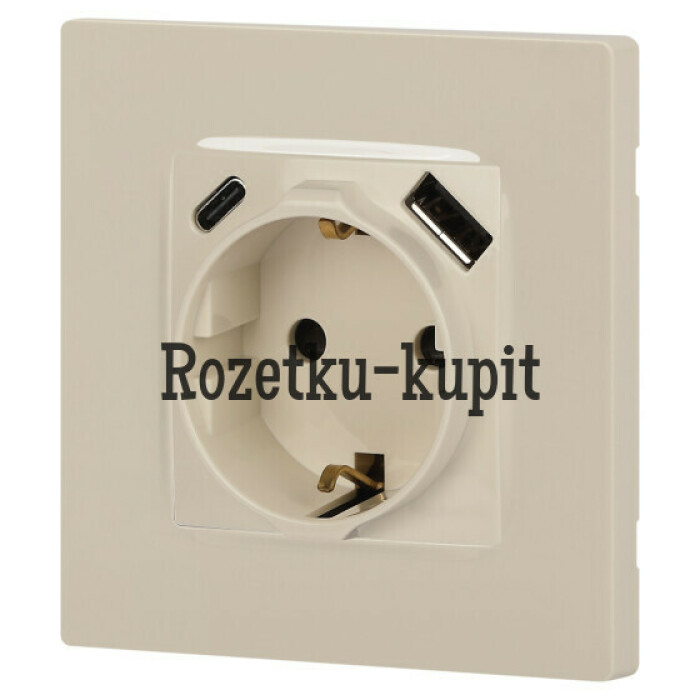 Розетка с USB A+C серии Эра12 12-4108-02 цвет слоновая кость. Номинальные характеристики: розетка силовая – 16А 250В. Розетка USB type A – 3A 5В. Розетка USB type C – 3A 5В. Рамки приобретаются отдельно