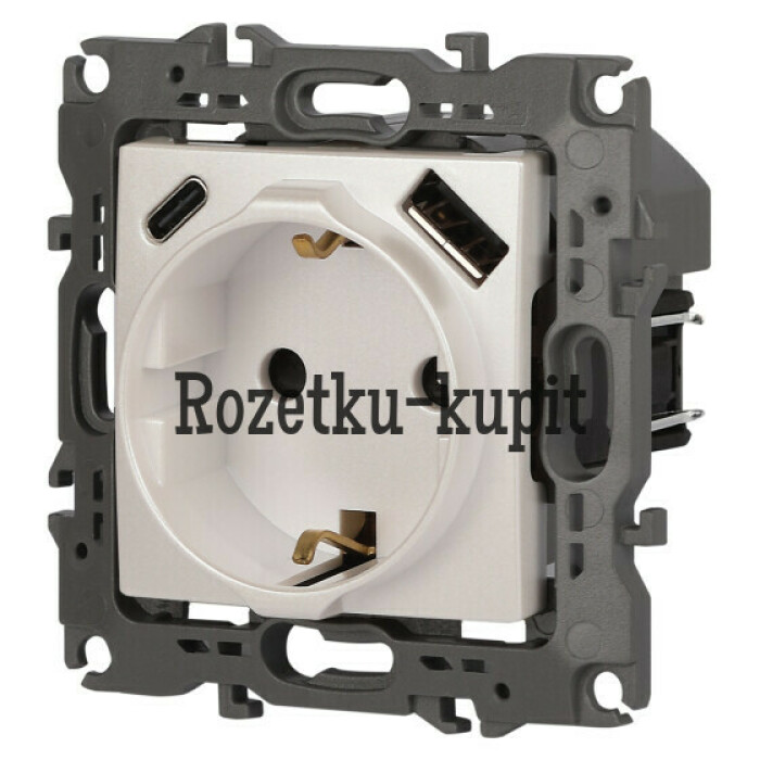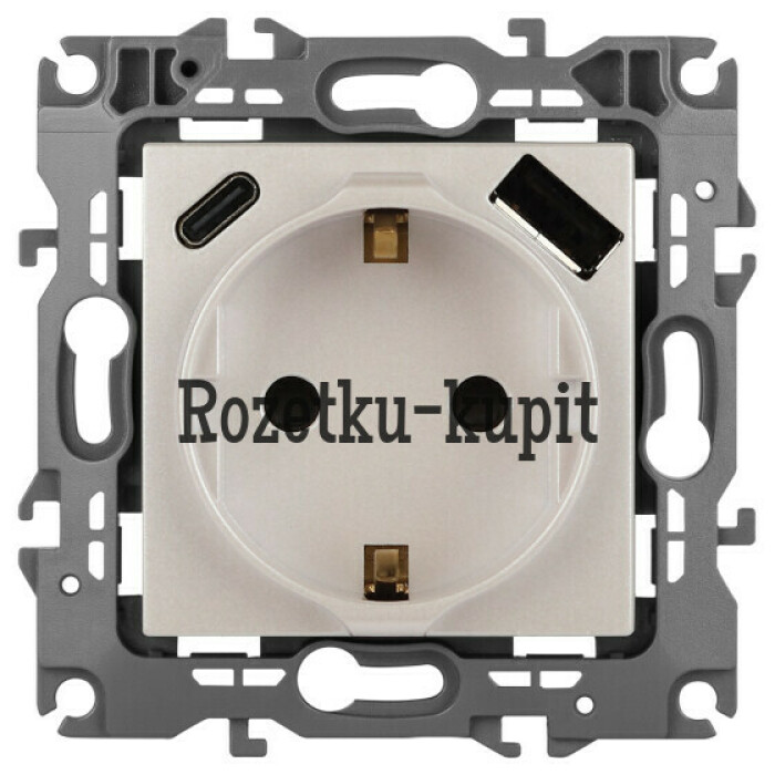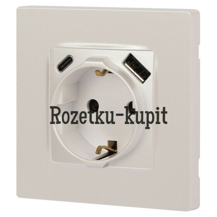 Розетка с USB A+C серии Эра12 12-4108-15 цвет перламутр. Номинальные характеристики: розетка силовая – 16А 250В. Розетка USB type A – 3A 5В. Розетка USB type C – 3A 5В. Рамки приобретаются отдельно