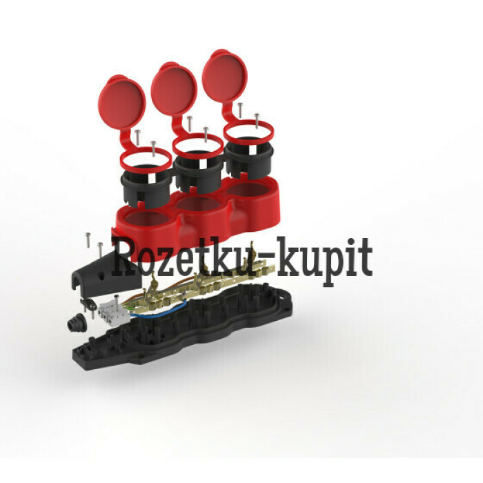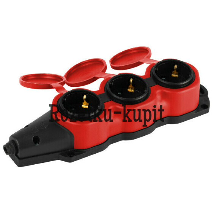 Каучуковая колодка ЭРА KX-3e-RED-IP44 3 гнезда, с заземлением, красная, для подключения кабеля (без разбора корпуса). Съёмная крышка. IP44-защита от пыли и влаги. Максимальная мощность 16А/3500Вт. Для кабеля сечением до 3x2,5мм2.