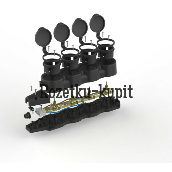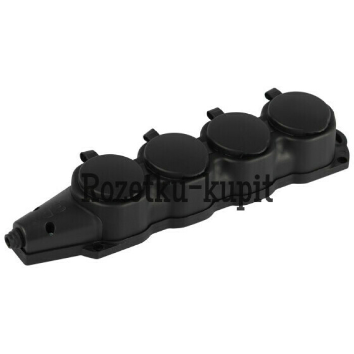 Каучуковая колодка ЭРА KX-4e-B-IP44 4 гнезда, с заземлением, черная, для подключения кабеля (без разбора корпуса). Съёмная крышка. IP44-защита от пыли и влаги. Максимальная мощность 16А/3500Вт. Для кабеля сечением до 3x2,5мм2.