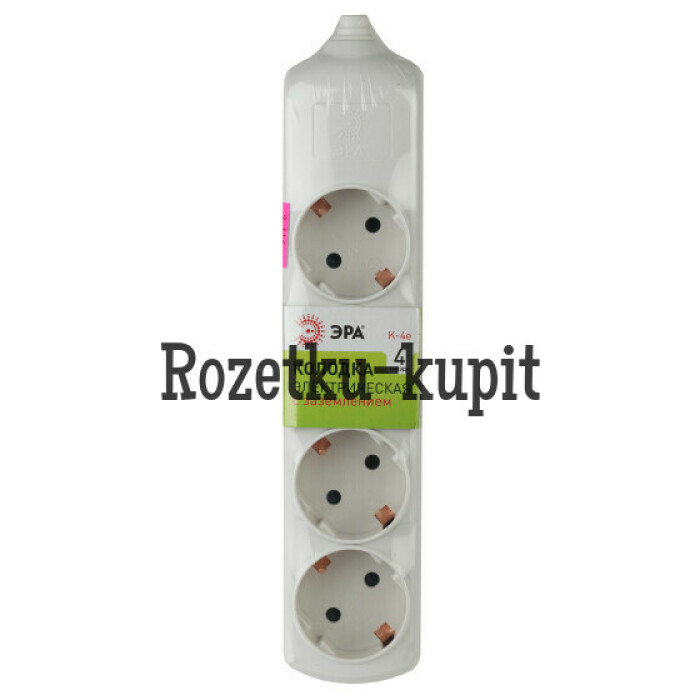 Колодка электрическая Эра K-4e с заземлением, 4 розетки. Корпус выполнен из ударопрочного и негорючего пластика. Рассчитана на максимальную мощность 16А / 3500 Вт и для подключения кабеля сечением до 1,5мм2. Электрическая колодка подойдет для тех, кто хочет сделать удлинитель самостоятельно. Также может использоваться как накладные розеточные блоке в подсобных помещениях.