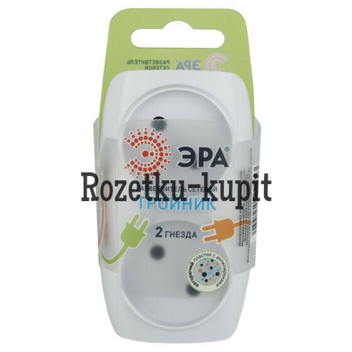 Разветвитель электрический Эра SP-2-W без заземления 2 розетки, белый. Если в Вашем доме недостаточно розеток, чтобы одновременно подключить несколько электроприборов, то тройник марки Эра станет Вашим надежным помощником. Электрический разветвитель расчитан на максимальную мощность 16А/3500Вт. Корпус выполнен из ударопрочного и негорючего пластика (поликарбонат). Модель тройника на 16А позволяет подключить мощные бытовые приборы общей нагрузкой до 3500Вт. Не бойтесь включить чайник, обогреватель или микроволновку. Дизайн разработан в России командой Эра Style