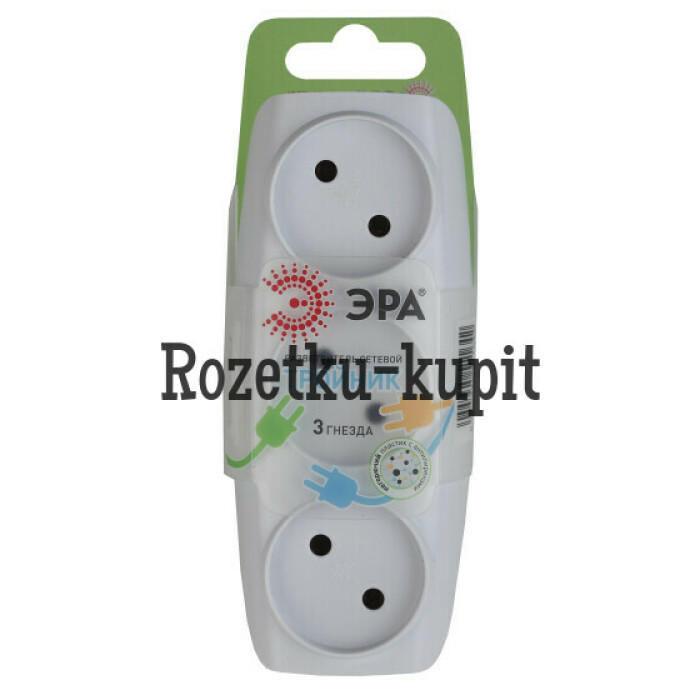 Разветвитель электрический Эра SP-3-W без заземления на 3 розетки. Если в Вашем доме недостаточно розеток, чтобы одновременно подключить несколько электроприборов, то тройник марки Эра станет Вашим надежным помощником. Электрический разветвитель рассчитан на максимальную мощность 16А/3500Вт. Корпус выполнен из ударопрочного и негорючего пластика (поликарбонат). Модель тройника на 16А позволяет подключить мощные бытовые приборы общей нагрузкой до 3500Вт. Не бойтесь включить чайник, обогреватель или микроволновку. Дизайн разработан в России командой Эра Style.