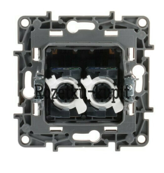 Розетка двойная компьютерная (информационная) ETIKA RJ45 UTP скрытого монтажа. Предназначена для быстрого подключения персональных компьютеров к информационным сетям категории 5Е.