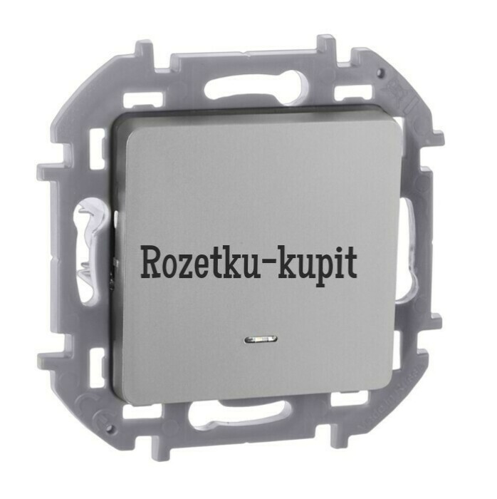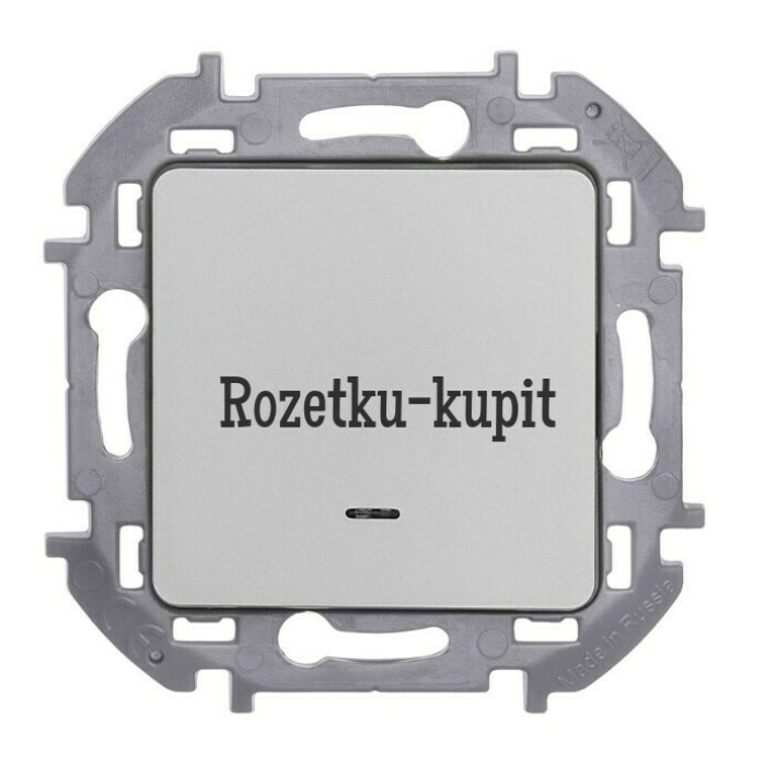Выключатель одноклавишный с подсветкой/индикацией скрытого монтажа Inspiria, цвет "Алюминий", номинальный ток 10АХ, напряжение ~250В, безвинтовые зажимы. Устанавливается в жилых и общественных помещениях для управления приборами освещения, вентиляции и т.д.