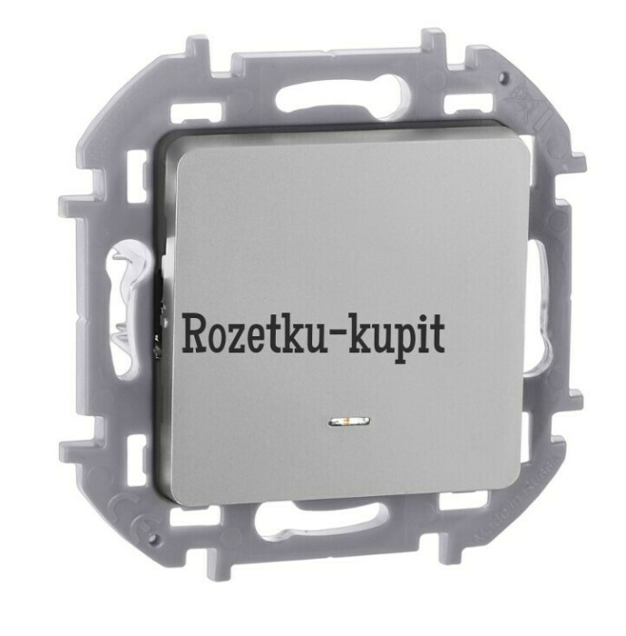 Переключатель одноклавишный с подсветкой/индикацией скрытого монтажа Inspiria, цвет "Алюминий", номинальный ток 10АХ, напряжение ~250В, безвинтовые зажимы. Устанавливается в жилых и общественных помещениях для управления приборами освещения, вентиляции и т.д. Предназначен для управления одной нагрузкой с одного, двух или более мест (совместно с перекрёстными переключателями).