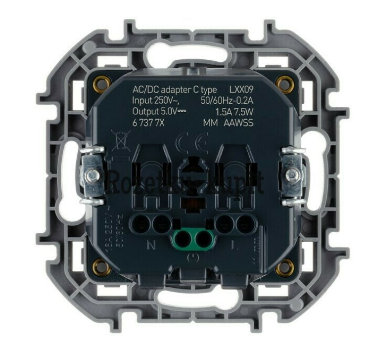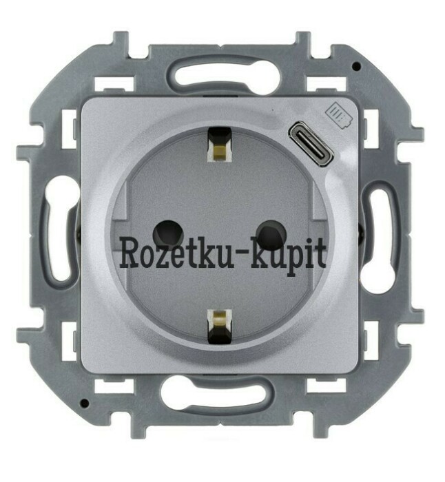 Комбинированная розетка 2К+З с зарядным устройством USB тип С Inspiria для скрытого монтажа, цвет "Алюминий". Максимальный ток розетки 16АХ, напряжение розетки ~250В, напряжение зарядного устройства =5В, максимальный зарядный ток 1500 мА. Применяется для одновременного электропитания бытовых потребителей и зарядки мобильного устройства. Оснащена интегрированными шторками, которые защищают детей и других пользователей от удара электрическим током.