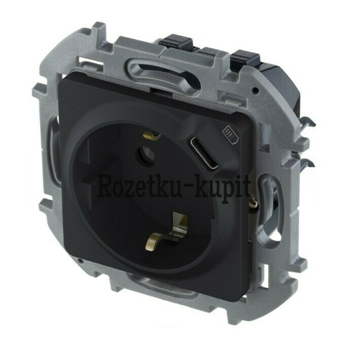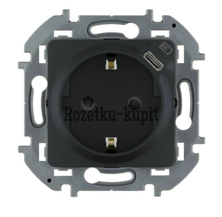 Комбинированная розетка 2К+З с зарядным устройством USB тип С Inspiria для скрытого монтажа, цвет "Антрацит". Максимальный ток розетки 16АХ, напряжение розетки ~250В, напряжение зарядного устройства =5В, максимальный зарядный ток 1500 мА. Применяется для одновременного электропитания бытовых потребителей и зарядки мобильного устройства. Оснащена интегрированными шторками, которые защищают детей и других пользователей от удара электрическим током.