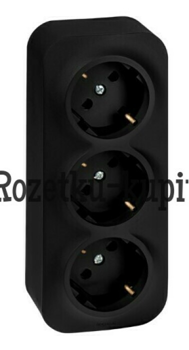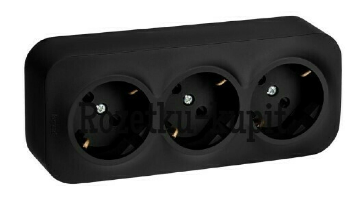 QUTEO Розетка 3-местная для открытой установки с заземлением с защитными шторками с предварительным подключением 16А чёрный матовый