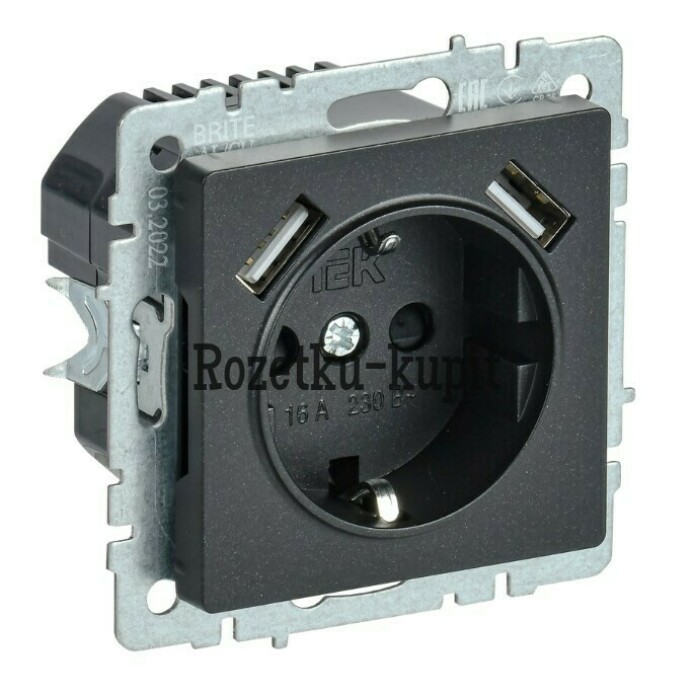 3 787 у3 573 уСкидка 214 уВ наличииiek BR-R14-16-U22-018-K01BRITE Розетка 1-местная с заземлением с защитными шторками 16А с USB A+C 18Вт РЮш11-1-БрБ белый IEK -