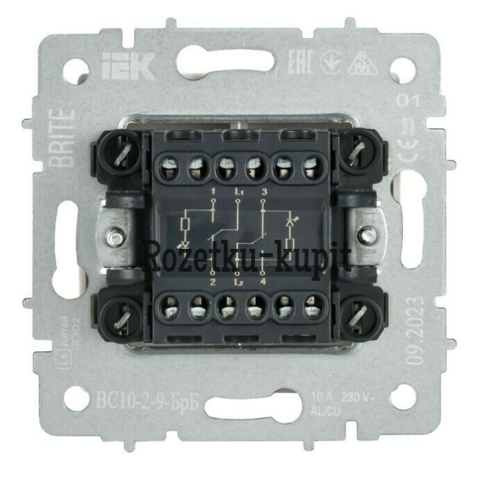 | Схема подключения | Выключатель 2х1-полюсный (двухклавишный) |