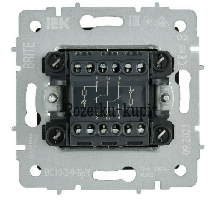 | Схема подключения | Выключатель 2х1-полюсный (двухклавишный) |