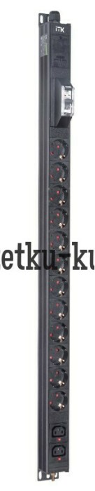 Вертикальный комбинированный блок распределения питания PDU ITK включает в себя розетки двух типов: 12 розеток Schuko и 2 розетки C13 – что позволяет подключать с их помощью различное оборудование. PDU ITK изготавливается из высококачественных термостойких материалов и пластмасс, оснащается 2,6 метровым кабелем электропитания с вилкой Schuko. PDU ITK прекрасно справляется с задачей по электроснабжению сетевого оборудования в шкафах и стойках, а также с требованием защиты от токов короткого замыкания и перенапряжения. PDU ITK соответствует российским и международным стандартам качества и устанавливается с помощью кронштейнов, при этом положение кронштейнов можно менять, либо безынструментальным методом при помощи монтажных штифтов.