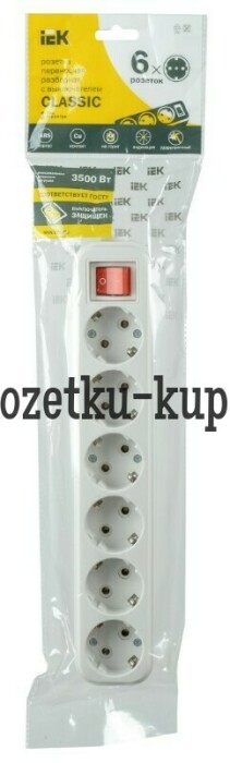 Розетка переносная разборная с заземлением с выключателем К06В 6 мест CLASSIC IEK
