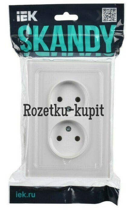 SKANDY Розетка 2-местная без заземления без защитных шторок для плоской вилки 10А SK-R03W стекло арктический белый IEK