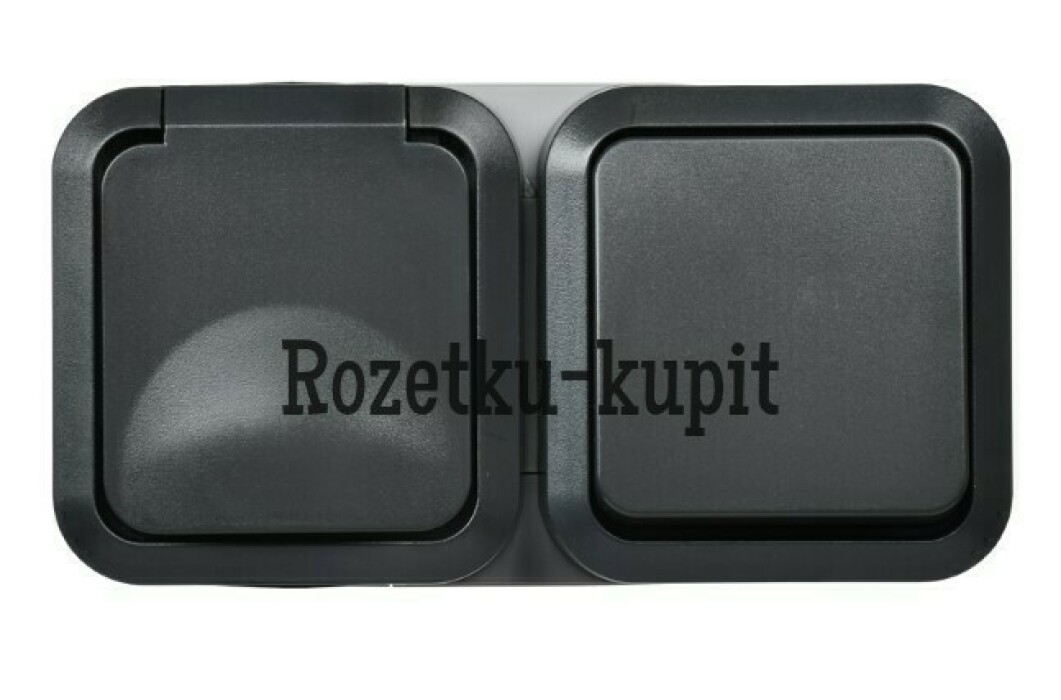 TORS Блок розетка + выключатель горизонтальный 16А IP55 TS142 графит IEK
