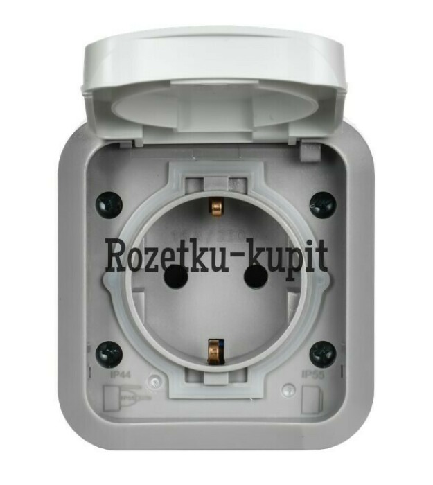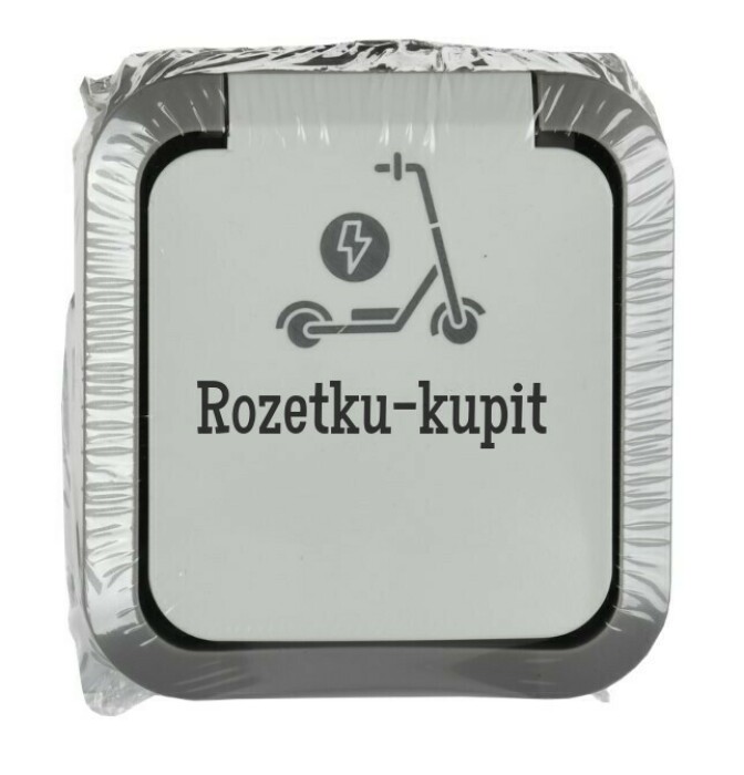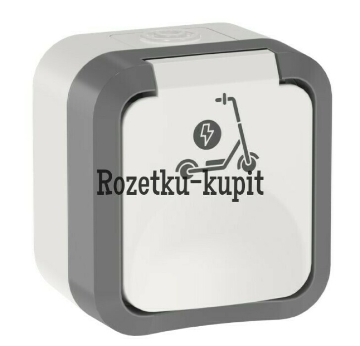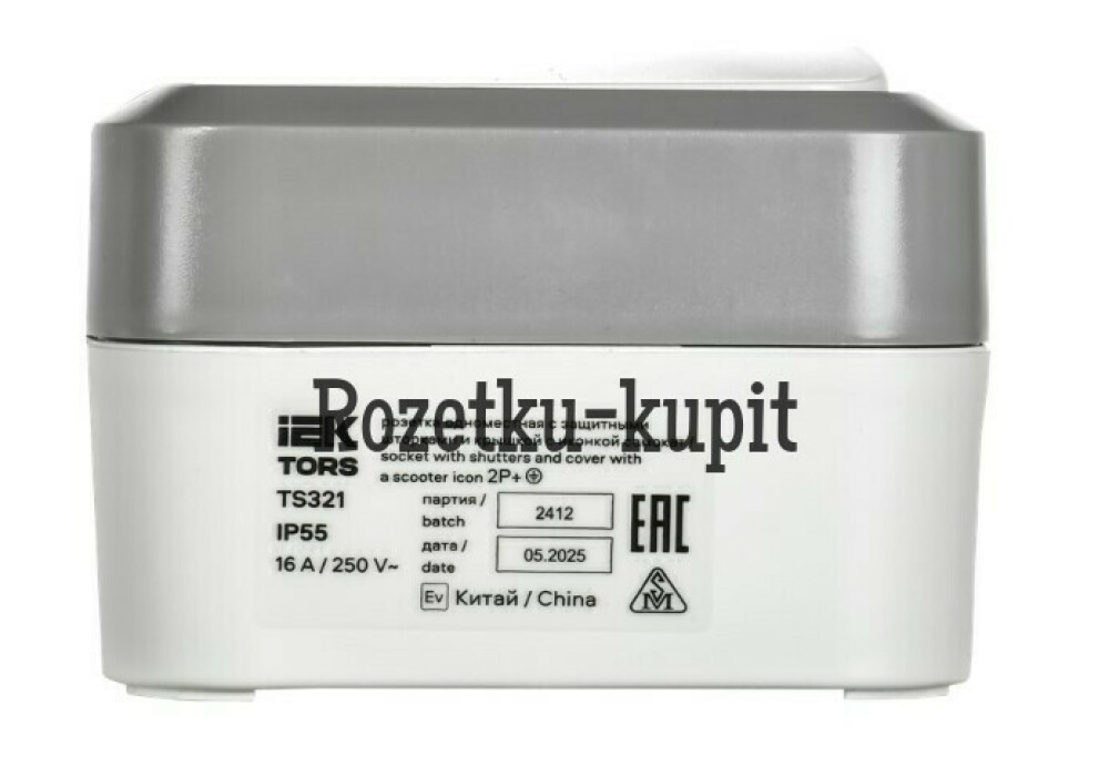 TORS Розетка 1-местная с заземлением защитными шторками и крышкой с иконкой самокат 16А IP55 TS321 серо-белый IEK