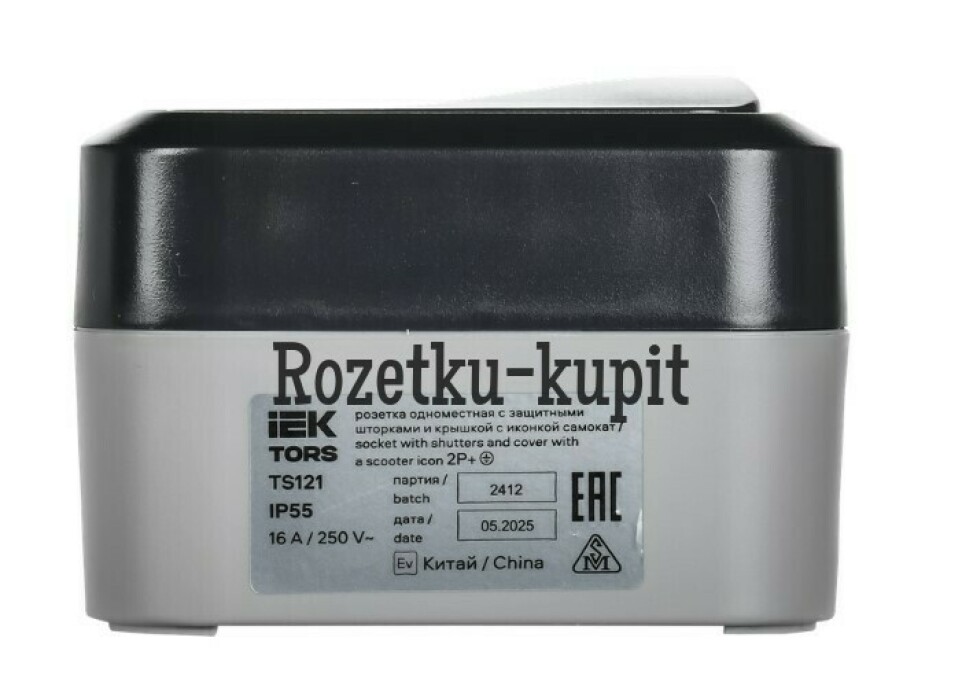 TORS Розетка 1-местная с заземлением защитными шторками и крышкой с иконкой самокат 16А IP55 TS121 графит IEK