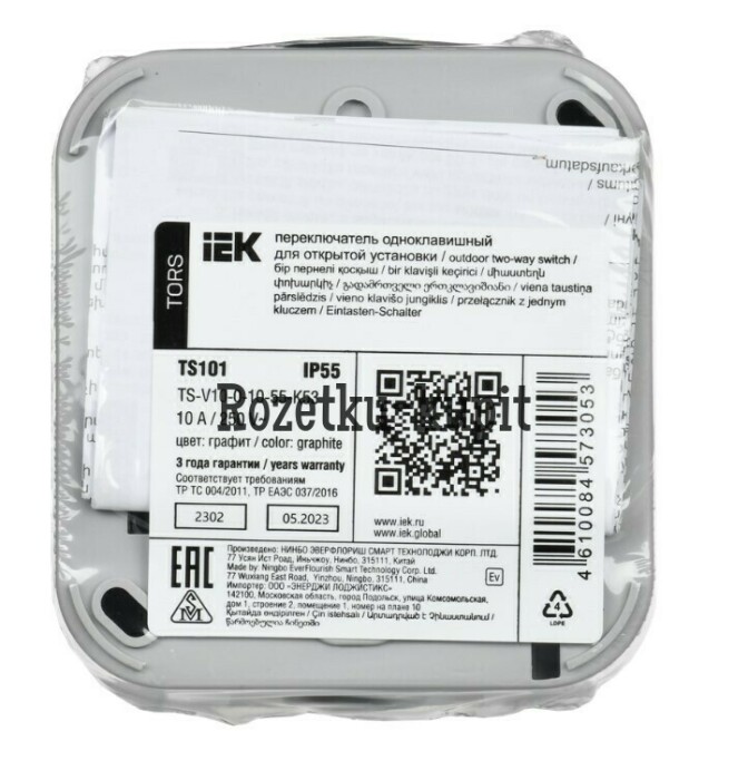 TORS Переключатель одноклавишный 10А IP55 TS101 графит IEK
