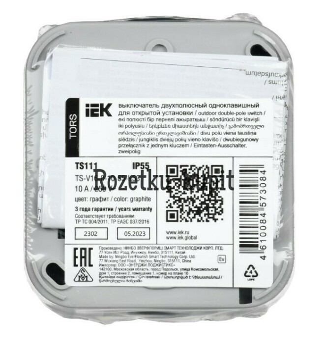 TORS Выключатель двухполюсный одноклавишный 10А IP55 TS111 графит IEK