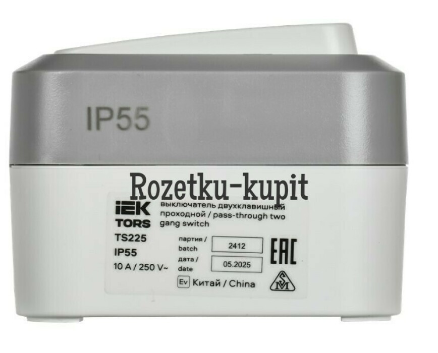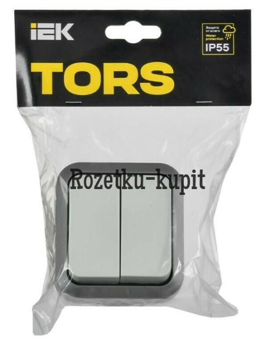 TORS Выключатель двухклавишный проходной 10А IP55 TS225 сер-бел IEK