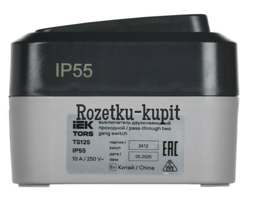 TORS Выключатель двухклавишный проходной 10А IP55 TS125 графит IEK