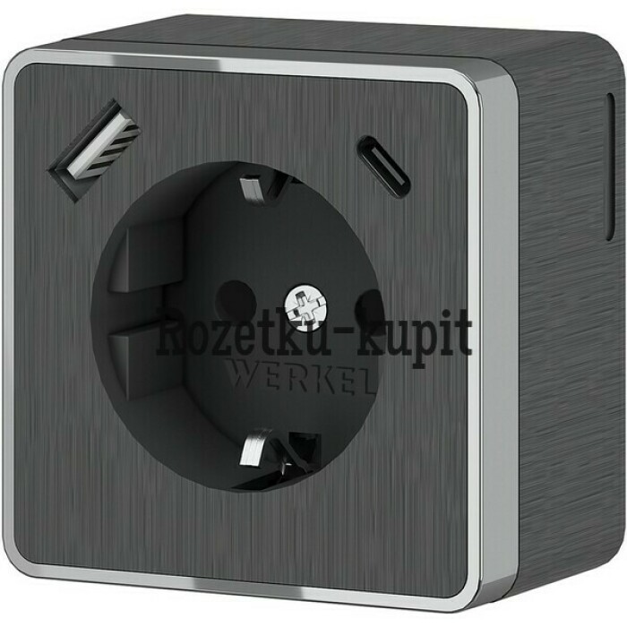 Розетка электрическая, с USB W5071704 от шведской фабрики Werkel. Материал изготовления – поликарбонат, цвет графит, номинальное напряжение 250 V, сечение подключаемых проводов 0.75 – 2.5 кв. мм, cтепень защиты от влаги и пыли IP20. Габариты: длина – 6.5 см, ширина – 6.5 см, высота – 4 см. Технические особенности: винтового типа, шторки, USB. Заказывайте Werkel W5071704 по лучшей стоимости с быстрой доставкой!