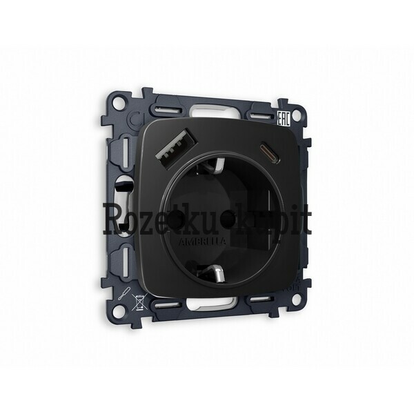 4 160 у3 748 уСкидка 412 уВ наличииAmbrella MO810010Комплект механизма электрической розетки OMEGA MO810010 Черный матовый 2USB A+C 20W 3000mA (быстрая зарядка) 180-220V/50Hz (5V3A, 9V2.22A, 12V1.66A) с заземлением со шторкой 16A-250V 50Hz 2P+E QUANT (OP8100, VM160) -