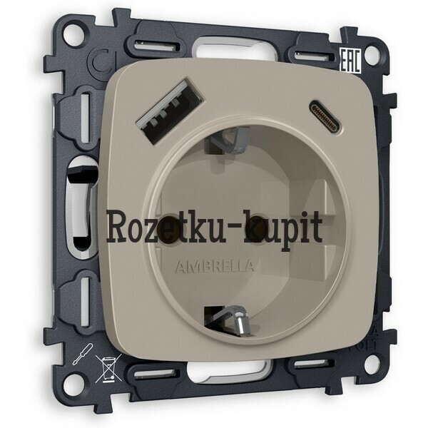 3 935 у3 748 уСкидка 187 уВ наличииAmbrella MO610010Комплект механизма электрической розетки OMEGA MO610010 Шампань 2USB A+C 20W 3000mA (быстрая зарядка) 180-220V/50Hz (5V3A, 9V2.22A, 12V1.66A) с заземлением со шторками 16A-250V 50Hz 2P+E QUANT (OP6100, VM160) -