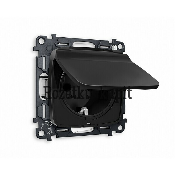 689 у599 уСкидка 90 уВ наличииAmbrella MA808010Комплект механизма электрической розетки ALFA MA808010 Черный матовый 16A-250V 50Hz 2P+E с заземлением, шторками и защитной крышкой IP44 QUANT (AP8080, VM141) -