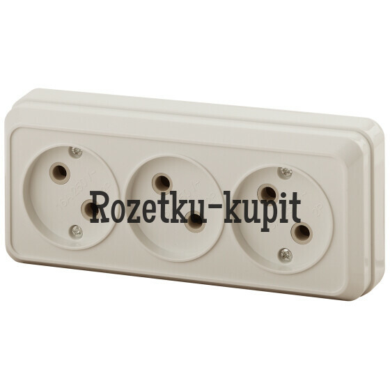 232 у215 уСкидка 17 уВ наличииЭра Б00538132-205-02 Розетка Intro Quadro 2-205-02 без заземления трехместная 3х2P, 16А-250В, IP20, ОУ, слоновая кость -