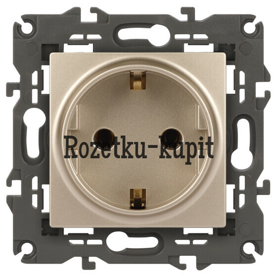 293 у262 уСкидка 31 уВ наличииЭра Б003427514-2102-04 14-2102-04 ЭРА Розетка 2P+E Schuko со шторками, 16A-250В, IP20, Эра Elegance, шампань -